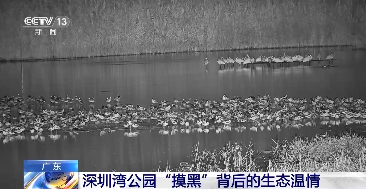 记者通过夜视设备观察发现,这片水域里,有黑脸琵鹭、反嘴鹬等多种候鸟,它们有的正在觅食,有的已经休息,数量还不少。