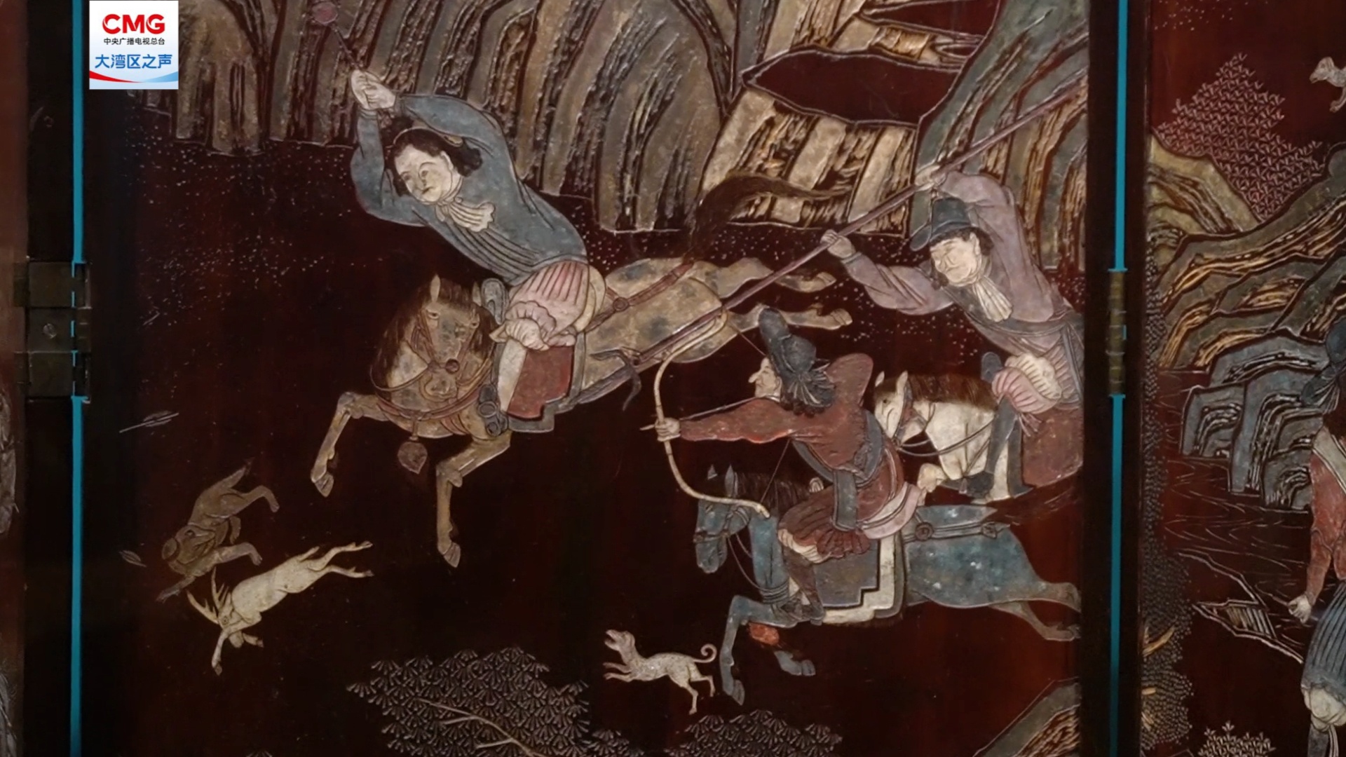简单来说,就是在漆器上做“减法”和“加法”。先刷漆,再画稿,然后把图案轮廓以外的漆铲掉,最后在凹下去的地方填上彩色的颜料,整个过程非常繁复。正是这种繁复的工艺,赋予了款彩屏风独特的魅力。凹凸的质感、丰富的色彩、耐久的质地,也难怪它会成为欧洲贵族眼中的珍品,中西文化交流的“硬通货”。