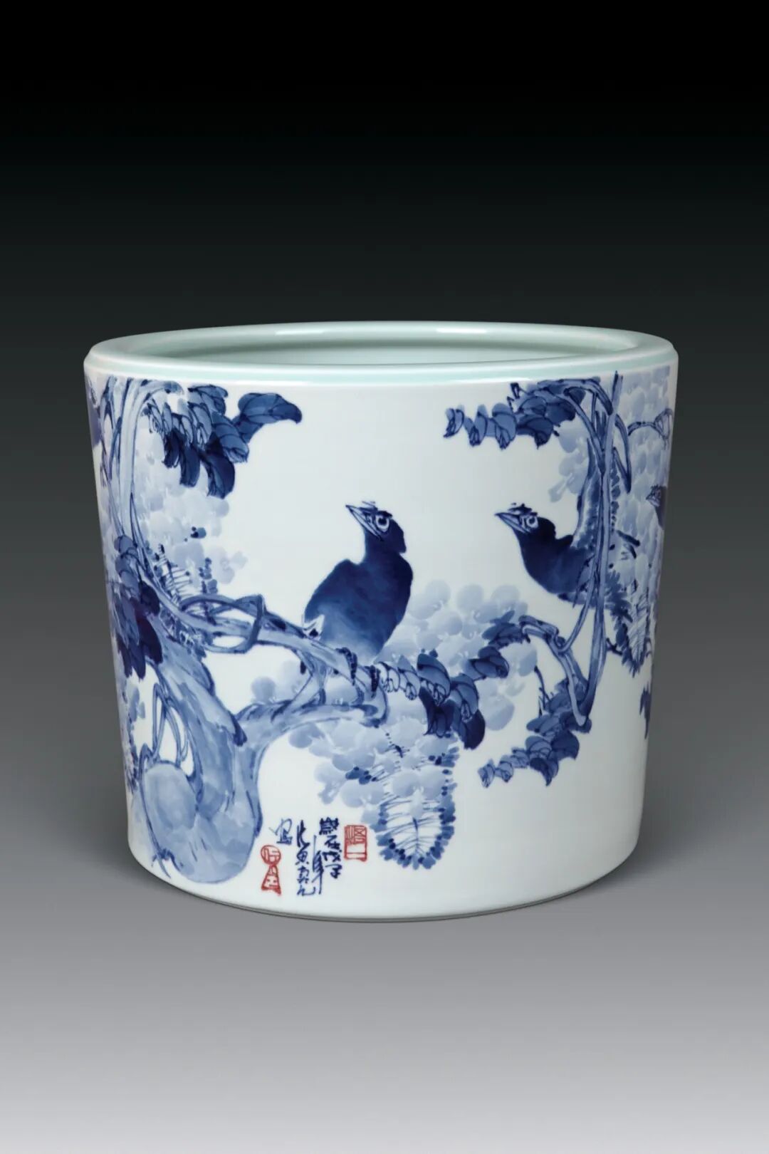 黄卖九大师技艺全面,功力深厚,擅长青花分水、青花斗彩、青花釉里红、粉彩、新彩及“半刀泥”刻花等多种陶瓷装饰技艺。他将中国画的笔墨意趣与陶瓷工艺深度融合,独创“黄卖九青花分水写意画法”,开创了当代青花绘画艺术的新流派,多件作品被人民大会堂、中国工艺美术馆等机构收藏。