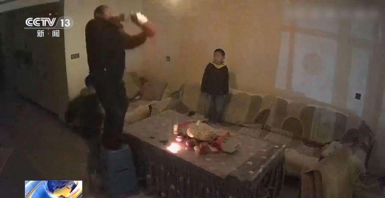 当晚9时20分左右,三兄弟正在沙发上看电视,突然,8岁的老大发现顶灯起火,于是,第一时间关闭了顶灯电源。但此时,灯具外壳已被引燃,带着火苗的燃烧物不断向下掉落,而下方茶几上的桌布属于易燃物,火势随时可能扩大。