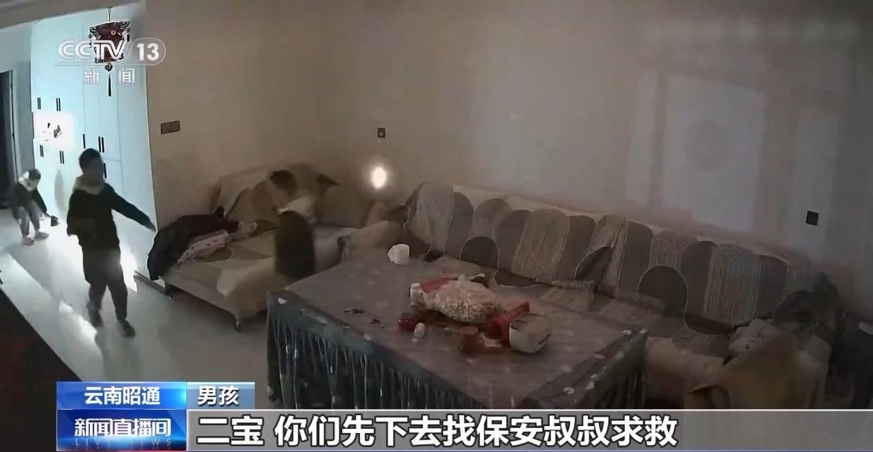8岁的大哥沉稳指挥,关掉电视,又安排两个5岁的弟弟去找大人求助,自己则留下来扑灭掉落的燃烧物。