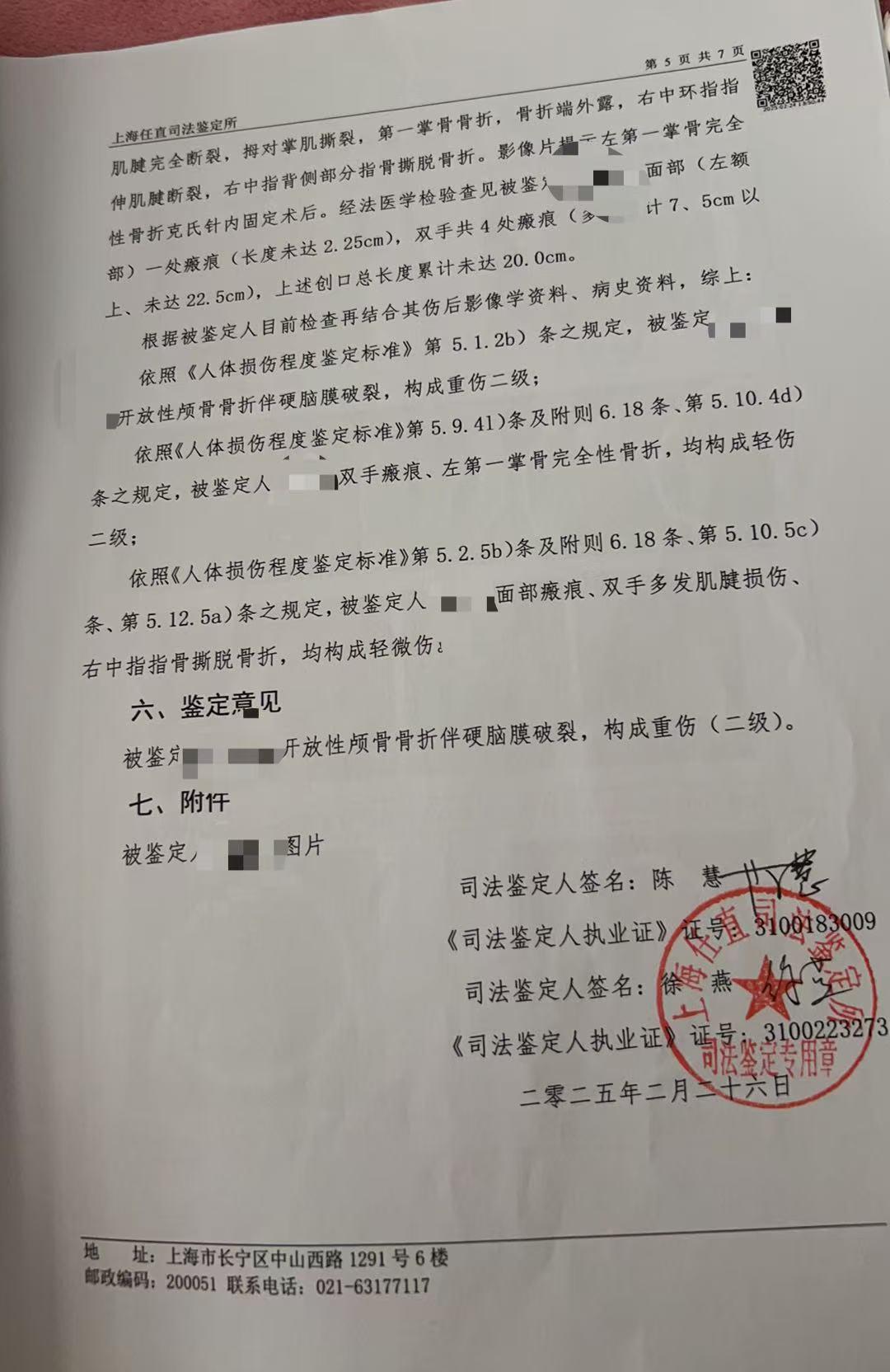 伤情鉴定 受访者供图