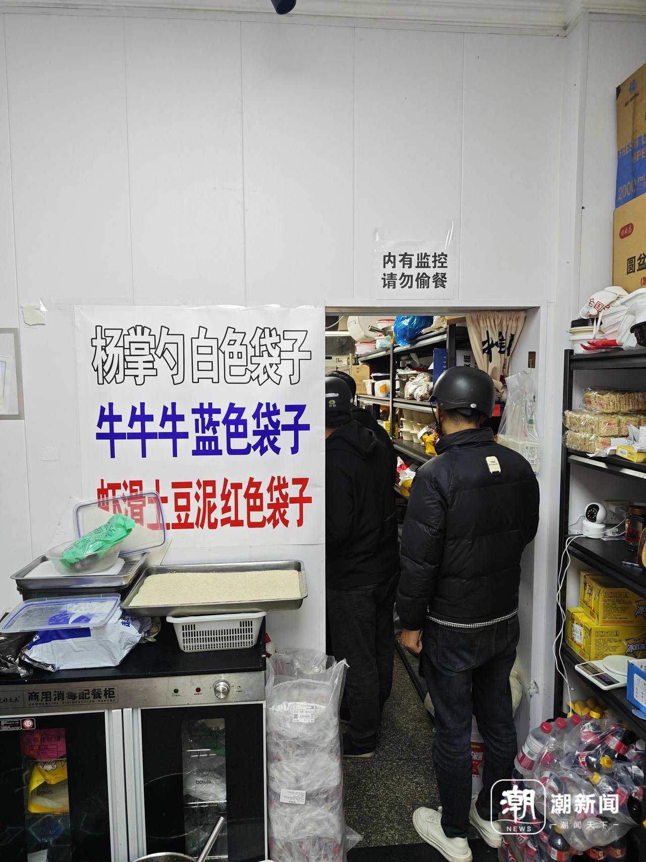 但实际上,该店由居民楼底部隔间改造而来,招牌仅是一张简单的贴纸。店内光线昏暗,物品摆放杂乱。做好的外卖很随意地被放在门口一个不锈钢支架上。