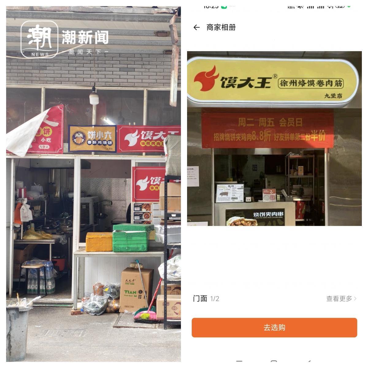 左侧为实际店铺,右侧为线上平台照片。记者 盛锐 摄