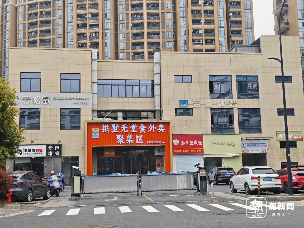 在拱墅区东新街道的新天地农贸市场二楼,就设置了一处无堂食外卖聚集区“新天地外卖厨房”。