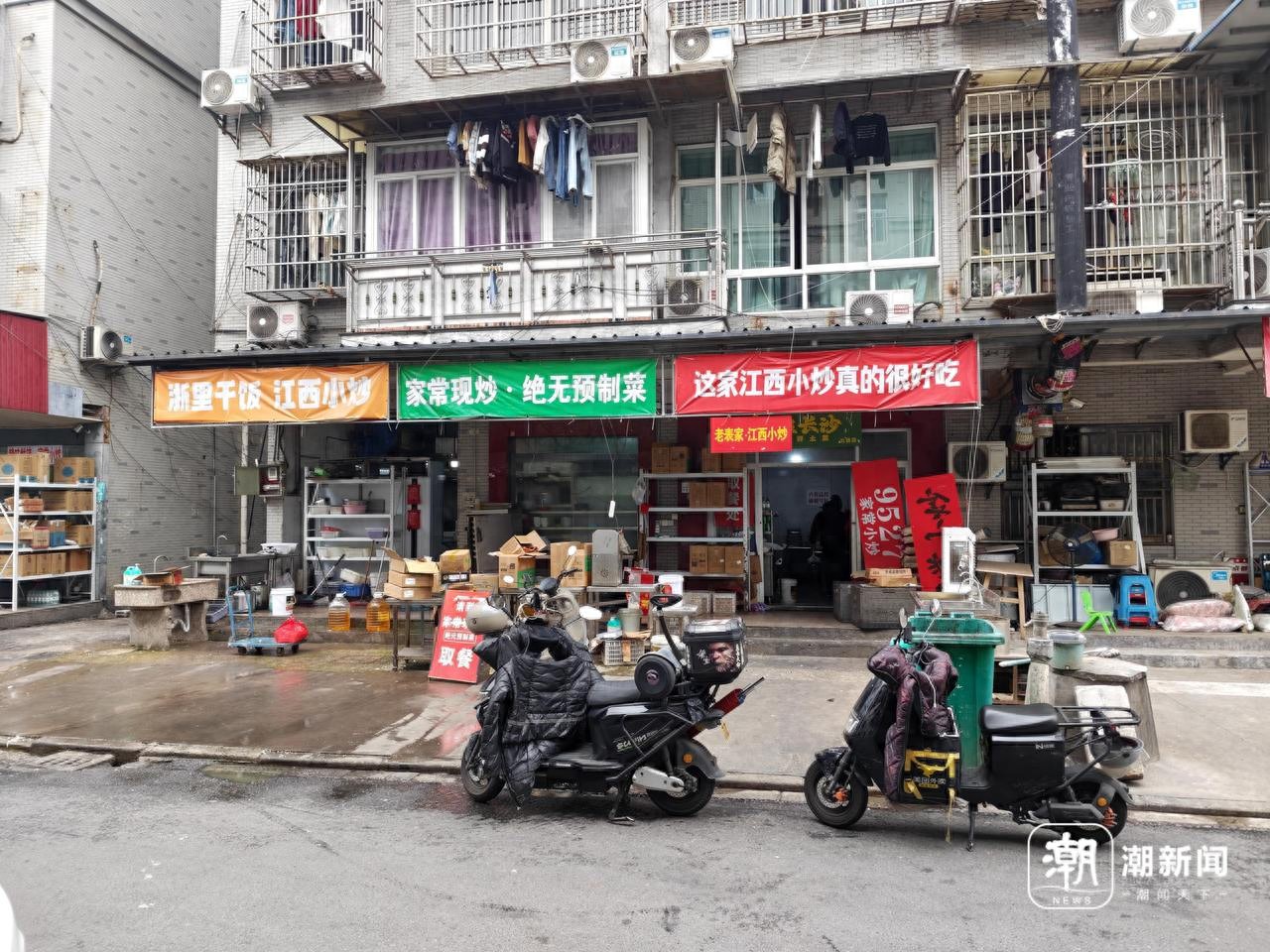 譬如,小区二排连着“浙里干(赣)饭”“家常现炒”“这家江西小炒真的很好吃”三家江西小炒招牌,走进才发现,内部其实为一家店。