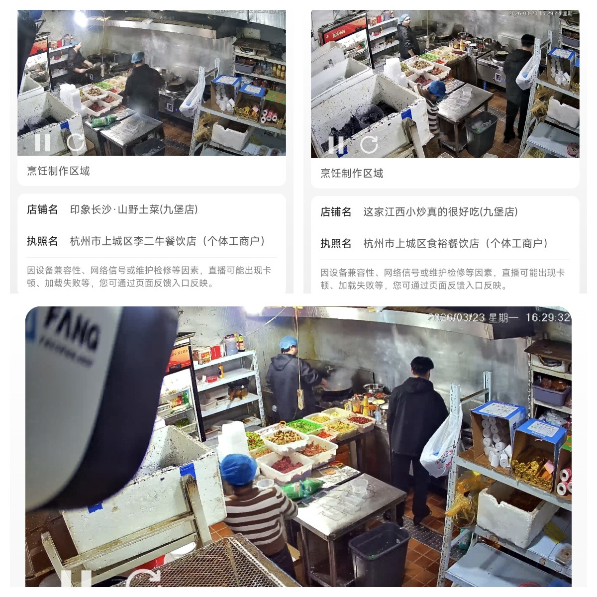 平台上三家不同的店铺,明厨亮灶直播画面为同一家。