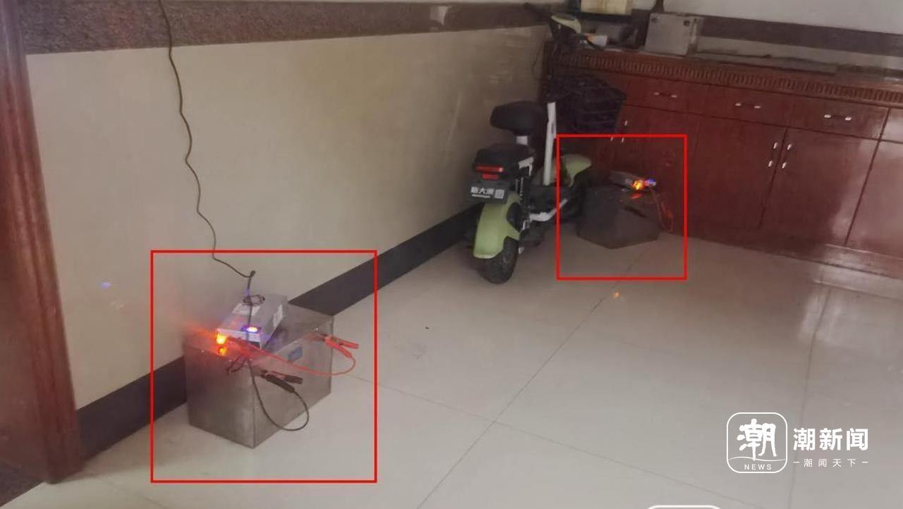 位于萧山区河西村一民房中,记者发现电鱼所用的大功率电瓶。潮新闻记者 王嘉楠 摄