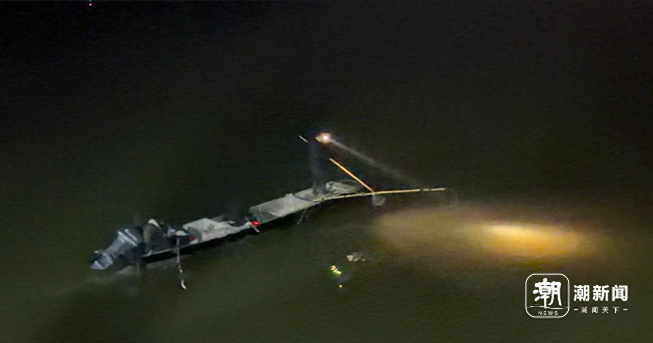 “通常晚上八、九点出发,次日凌晨四、五点回来,浦阳江、富春江、钱塘江都是他们的‘作案区’。”在付树明的指引下,记者来到浦阳江上游的一座跨江大桥上蹲守。1月24日凌晨1时40分许,目标船只来到记者蹲守的区域。在蹲守区域,记者可以清晰看到,船头位置有两根杆子向外伸出,杆尖垂下的电线直入水中——这正是非法电鱼的标志性装备“八字杆”。