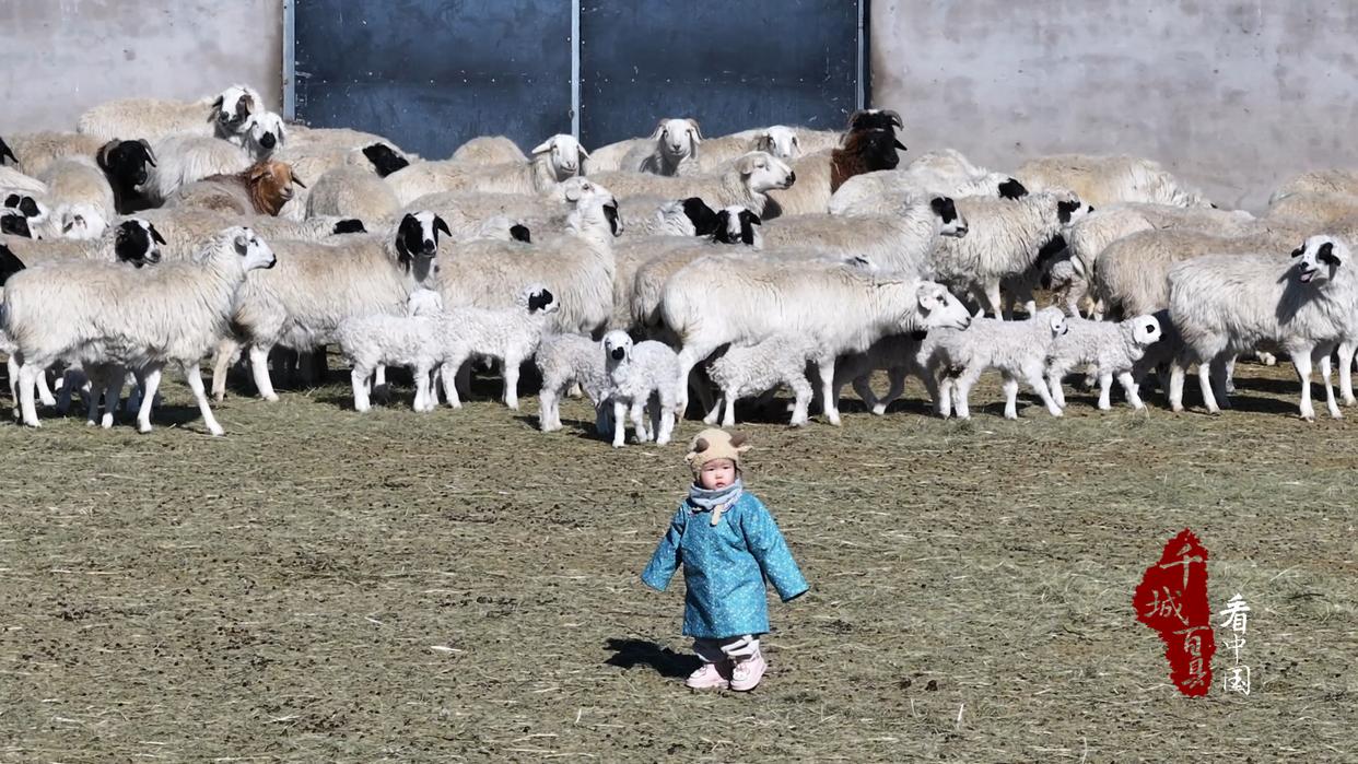 锡林浩特市朝克乌拉苏木阿日高勒嘎查一处羊圈里,牧民家的小女孩缓缓迈步,初生羊羔憨态可掬、温顺相随,稚嫩身影与新生命在春日里静静相伴、相映成趣,勾勒出草原牧区质朴而动人的画面。