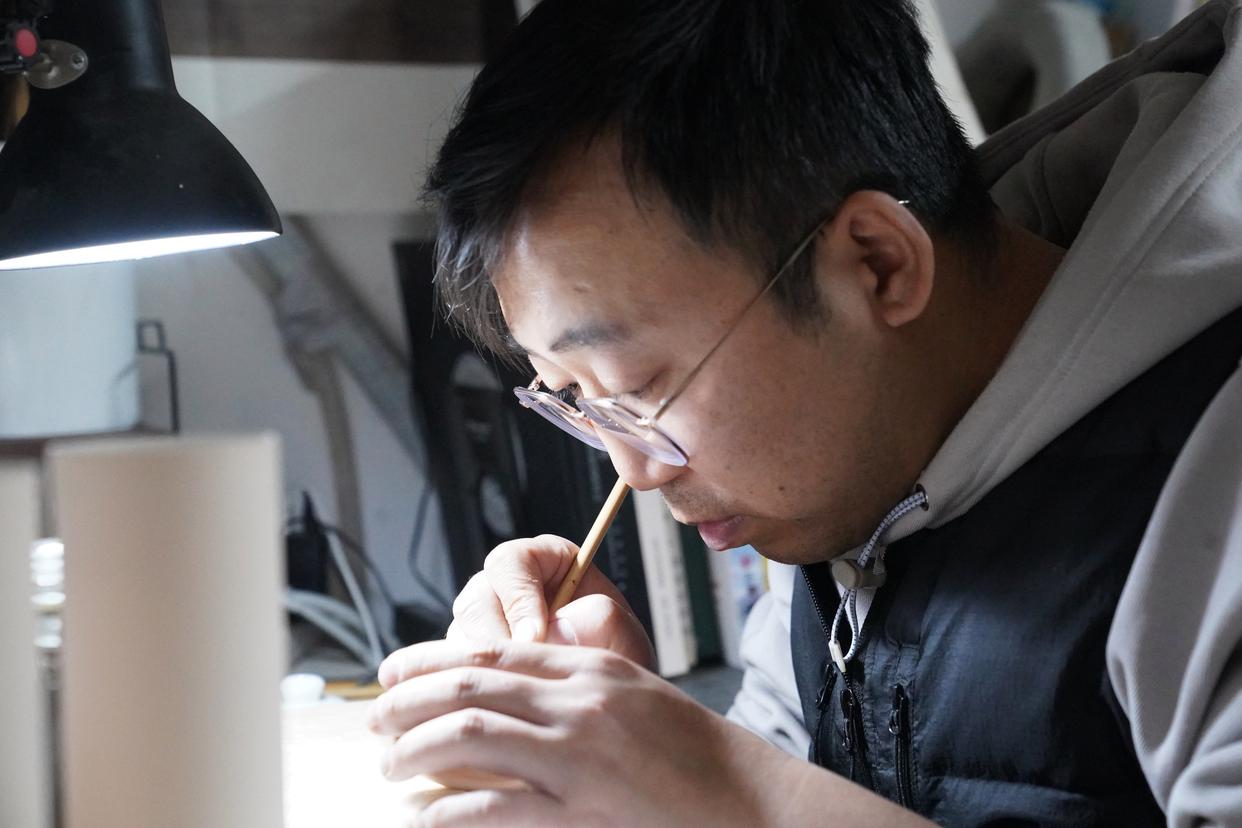 曹浪在工作室创作(3月11日摄)。新华社记者 周密 摄