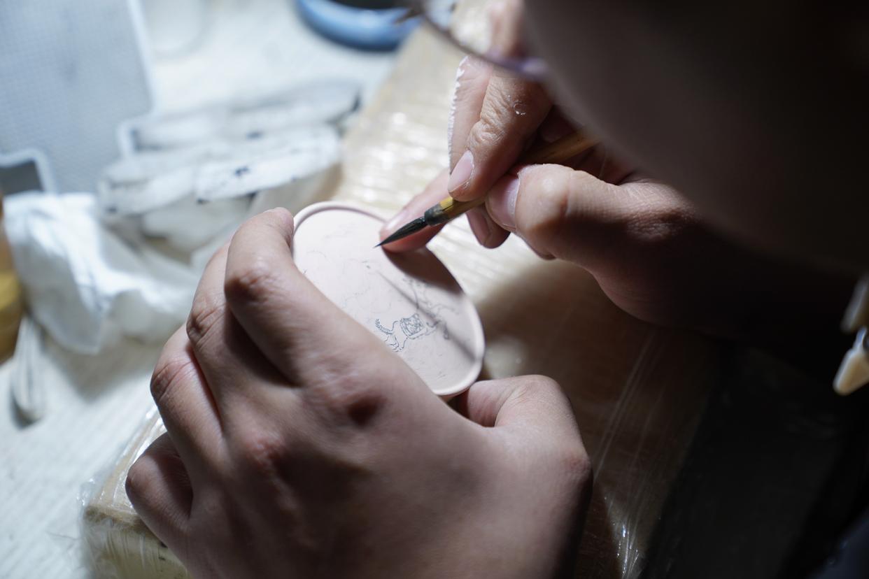 2013年,夫妇二人从延安大学美术学专业毕业后来到景德镇,以瓷为纸、以笔为媒,投身陶瓷绘画创作。在了解市场需求后,他们开始主攻以繁复画工为主的青花手绘瓷。随着技艺日渐纯熟,2014年他们创立“问山御隐”工作室,他们的艺术瓷作品频频亮相各类艺术展,凭借扎实功底斩获业界与市场认可。依托景德镇完善的陶瓷产业链,夫妇俩紧跟电商浪潮,于2020年创立自主茶具品牌,深耕线上市场、推出个性化定制服务。未来,他们计划在打造高质量陶瓷品牌的同时,创作出更多有个人印记的艺术作品。 景德镇让这两个怀揣美术梦想的年轻人成为“新景德镇人”,他们不仅靠技艺赢得了市场,也靠坚持一步步实现着自己的艺术梦。