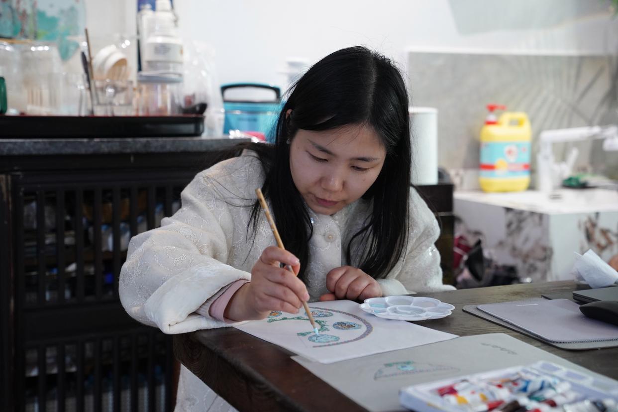 胡韵月在工作室创作(3月11日摄)。新华社记者 周密 摄