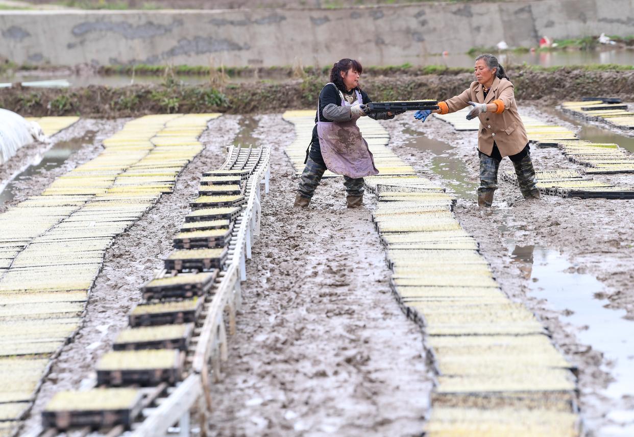 随着气温逐渐升高,在素有“渝东粮仓”之称的重庆市梁平区,农民抢抓农时进行水稻育秧等工作,田间地头一派繁忙景象。