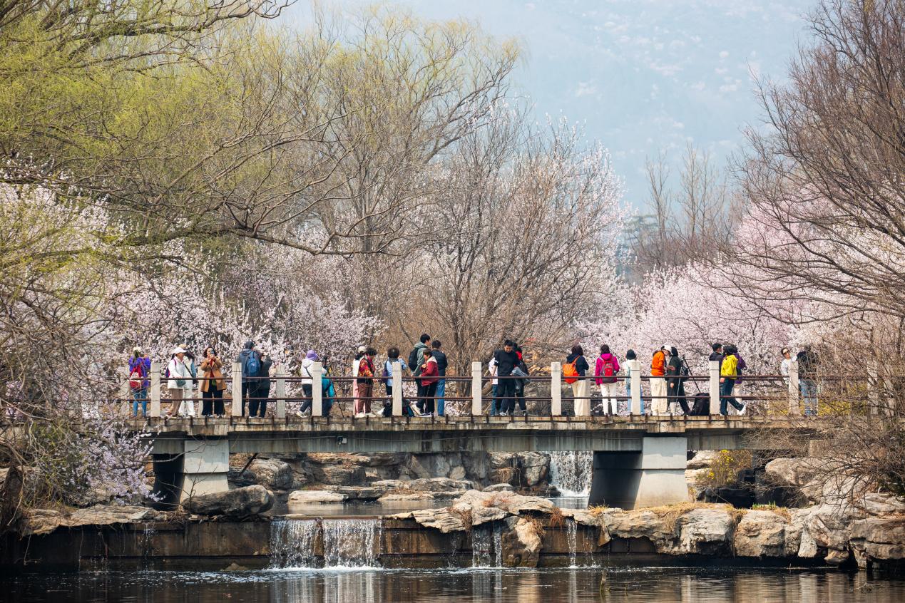 3月24日,国家植物园桃花溪景区,游客正在观赏桃花盛开的美景。(张立新/人民图片)
