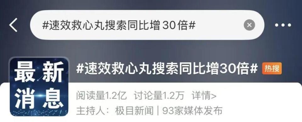 速效救心丸、硝酸甘油、硝酸甘油舌下片等心脏用药品类相关搜索词暴涨,同比增长超过30倍;