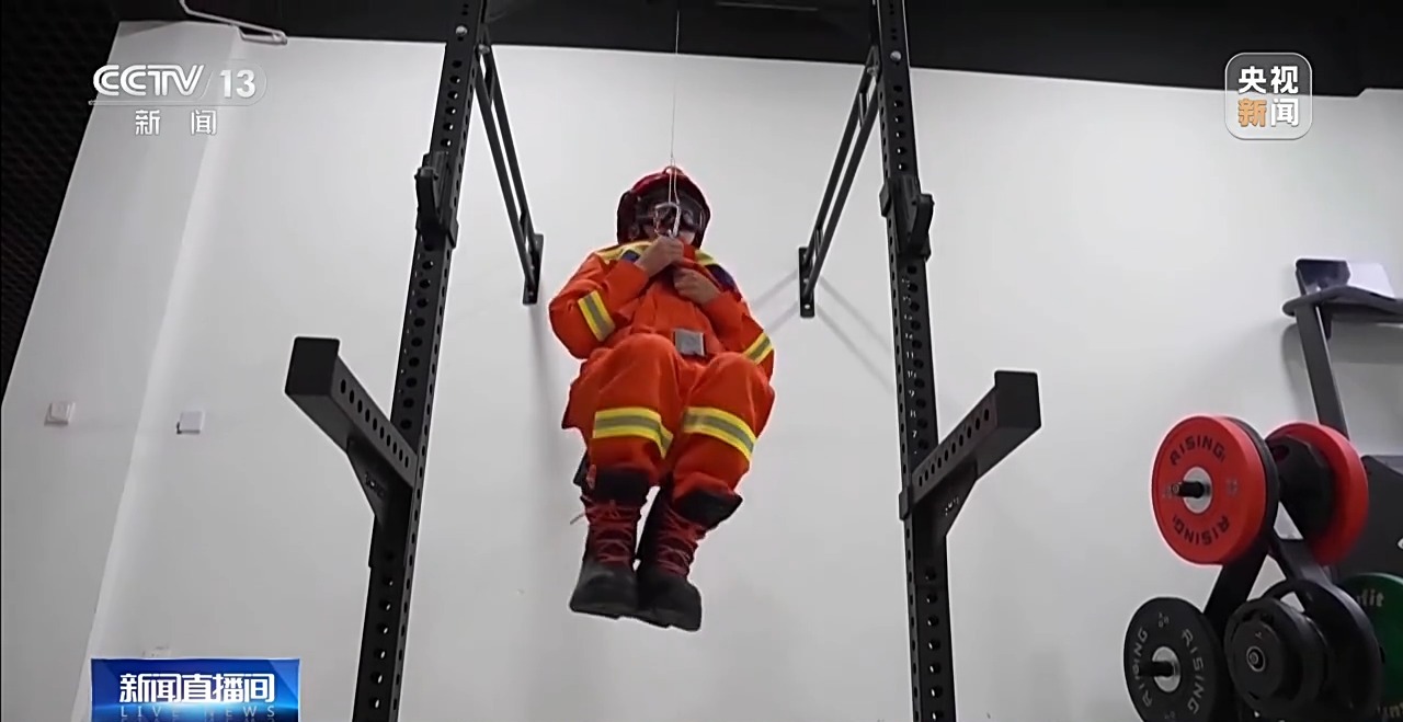 为了进一步验证风筝线的威力,消防员还对风筝线的拉力进行了测试。一名工作人员穿戴好防护装备,将风筝线的一头固定在安全腰带上,另一头固定在拉力计上,再将风筝线穿过单杠。两名消防员在另一边慢慢拉动风筝线,当拉力值达到50公斤左右时,这名消防员被吊离地面。