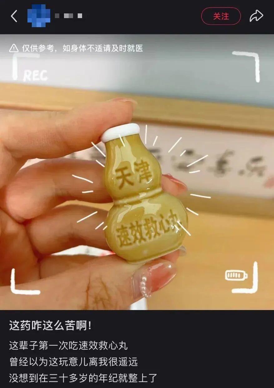 在社交平台上,不少网友也发帖,速效救心丸不再是老年专属,很多年轻人、上班族也随身携带。