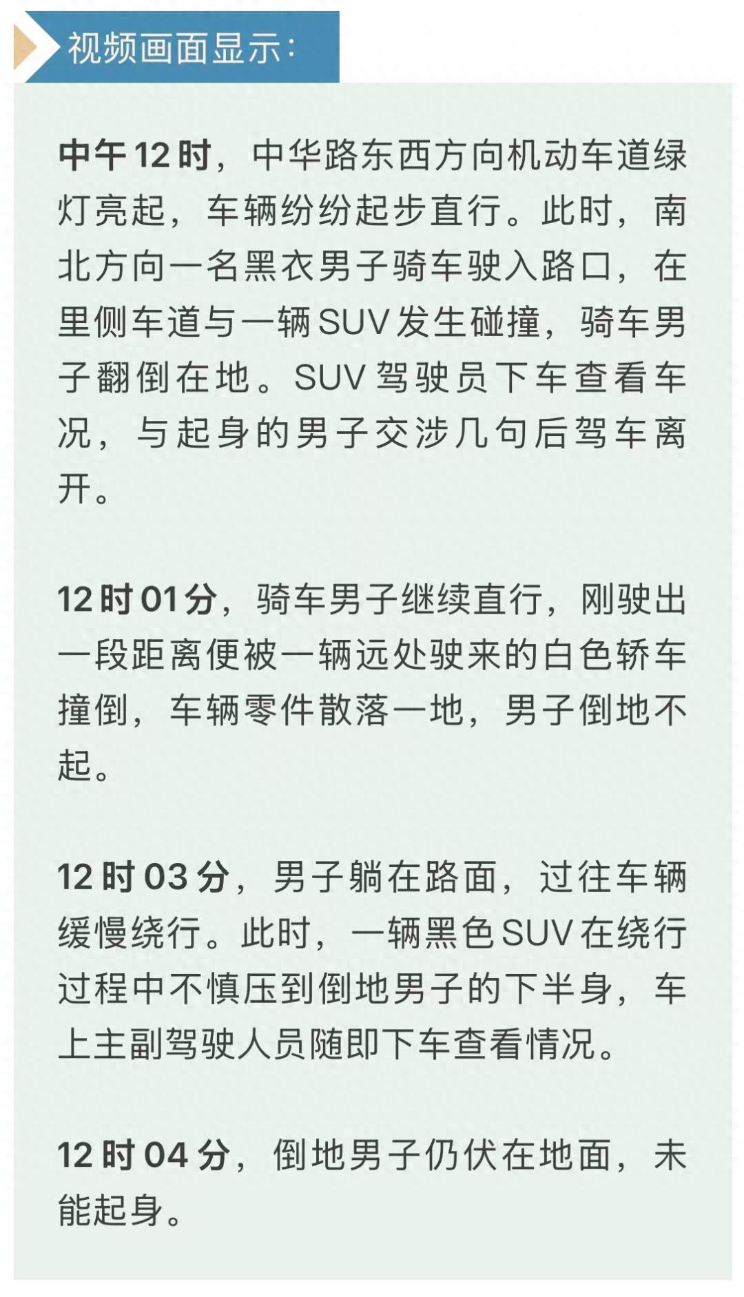 据潘女士转述,父亲躺在病床上回忆称,第一台车将他撞倒后,老人受到了惊吓,一时间慌了神,这才慌不择路继续向前骑行。