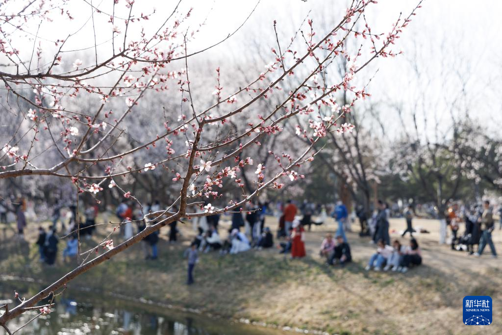 3月22日,游客在北京奥林匹克森林公园赏花。