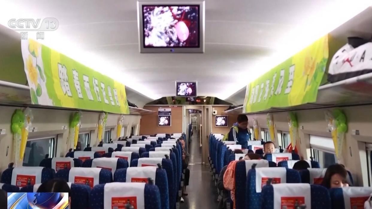 总台记者 唐嘉伟:列车不断往南疾驰,窗外风景不断变换,在赏花列车上,乘务员们准备了互动活动。