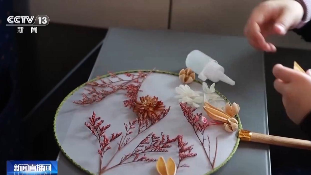 在乘务员的引导下,旅客们一起动手制作永生花团扇,一朵朵干花被“定格”在扇面上。随着列车接近吉安,车窗外的春色愈发浓郁,一片接一片的油菜花田次第铺开。不少旅客用手机记录车窗外的美景。