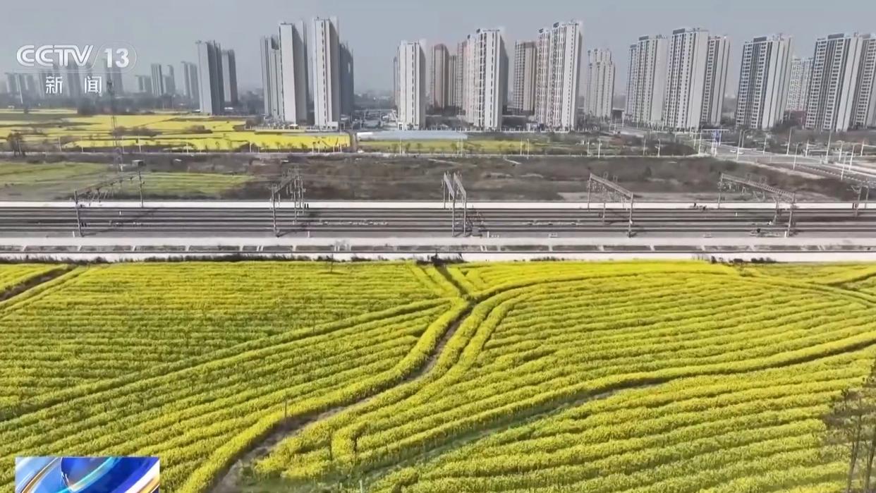 赏花专列上座率持续走高,南昌东站周边也成了市民踏青赏春、打卡休闲的热门去处。这里的千亩油菜花正进入盛花期,大片金色花海与现代化高铁站房、飞驰列车相映成景,勾勒出一幅“车在画中行,人在景中游”的春日画卷。