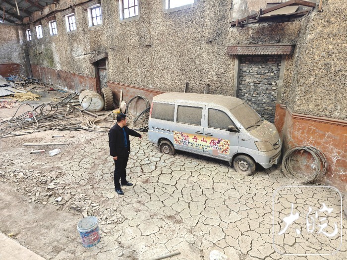 张强告诉记者,由于合作社地处山谷,原本的排水涵洞在修路时被破坏,导致夏天雨季时,山上的水汇流至此,厂房就会被淹。顺着张强手指的方向,记者看到厚厚一层干涸的泥块,屋内停放的面包车车轮也已陷在其中。