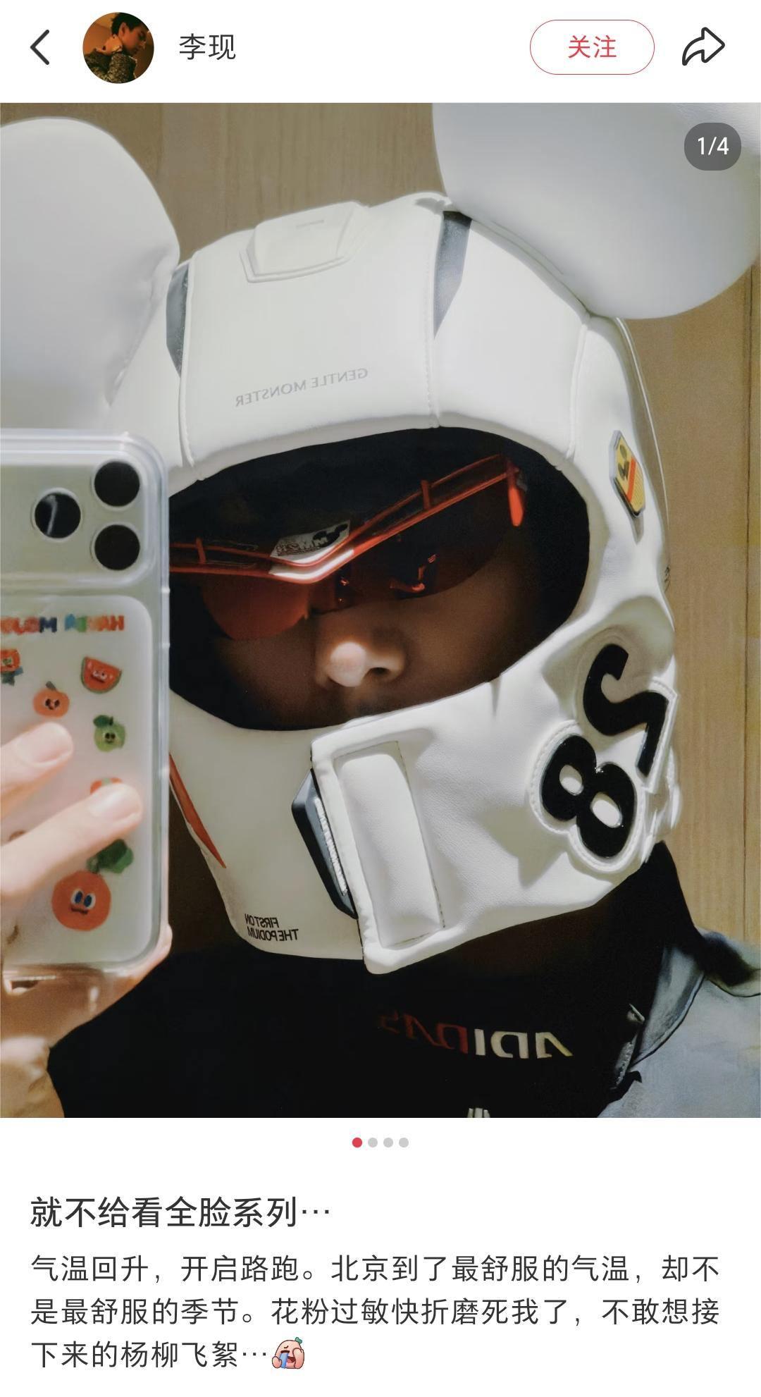 “气温回升,开启路跑。北京到了最舒服的气温,却不是最舒服的季节。花粉过敏快折磨死我了,不敢想接下来的杨柳飞絮……”3月27日,演员李现在个人社交平台分享春季运动日常。照片中,他把自己的头裹得严严实实,只露出一双眼睛,酷似“养蜂人”,网友纷纷评论:这简直太真实了!