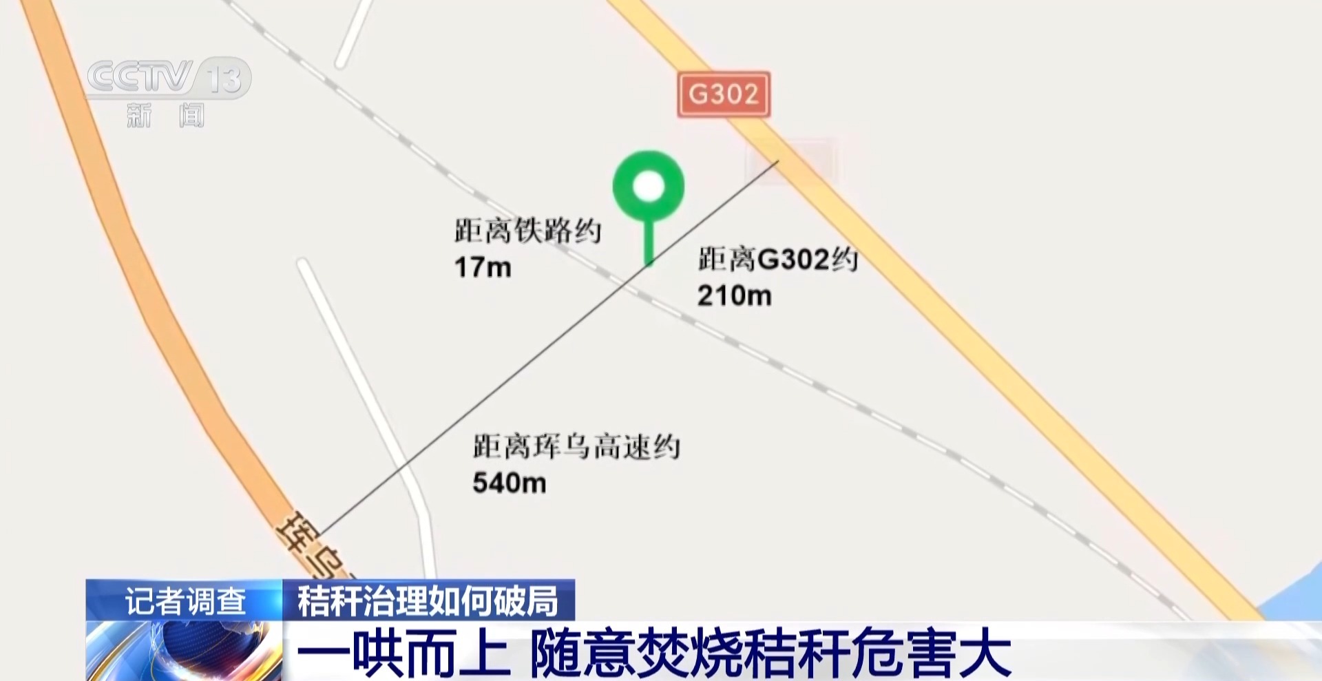 从地图上可以看出,记者现场出镜的位置就在两条公路和一条铁路之间,距离都在几百米甚至几十米以内,离公路、铁路这么近的地方允许烧秸秆吗?当时记者就此问题向巴郎镇政府工作人员了解。