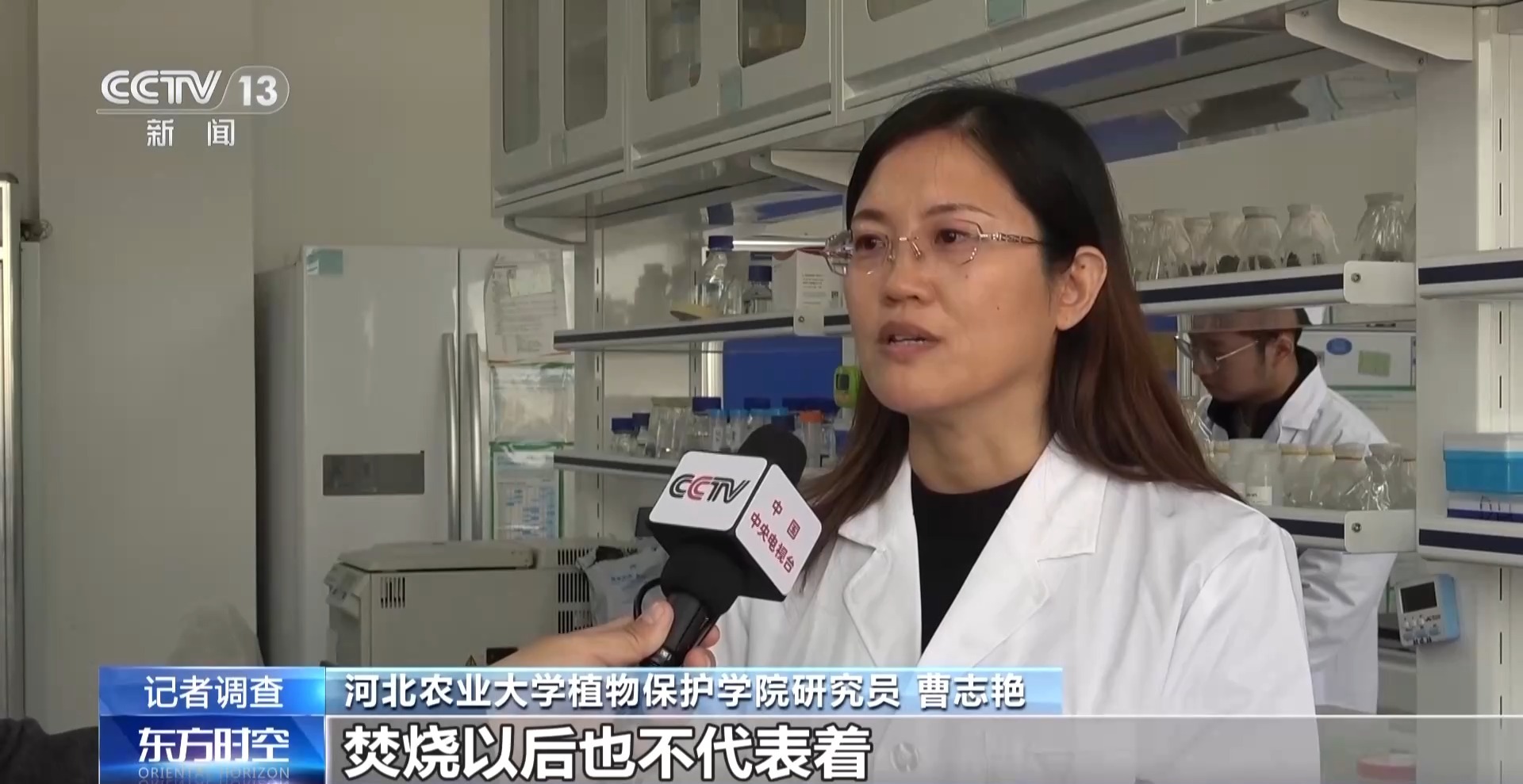 一烧了之,真的像老乡说的那样,既能杀虫又能肥地吗?在河北农业大学植物保护学院,记者见到了长年从事秸秆研究的曹志艳教授。她对秸秆如何处理,以及之后造成的病虫害等情况进行了7年的跟踪调查,在全国各产区采集的样本超过了4000份,她发现病虫害的发生原因相当复杂。