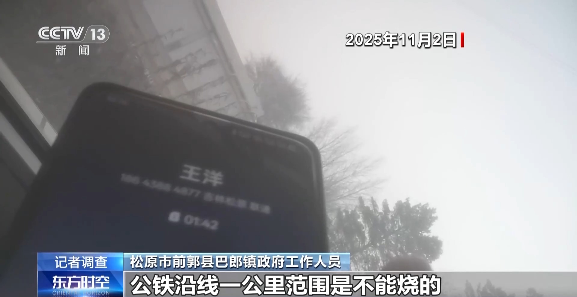 松原市前郭县巴郎镇政府工作人员:公铁沿线一公里范围是不能烧的。