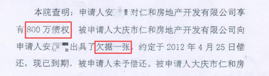 肇源县人民法院认定他人享有800万元债权