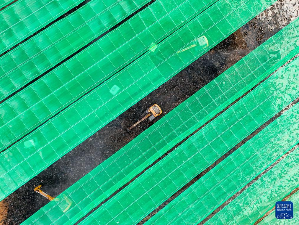 在玉龙垃圾填埋场环境修复工程现场,机械设备在巨型天幕下进行开挖作业(1月30日摄)。新华社记者 梁旭 摄
