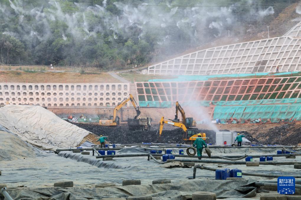 啃下“硬骨头”,科技是关键。记者在现场看到,巨型天幕覆盖作业区,负压通风锁住臭气;地表防渗膜与导排管网,有效收集处理渗滤液;120余套在线监测设备实时盯守,数据联网,全程可追溯、可监管。