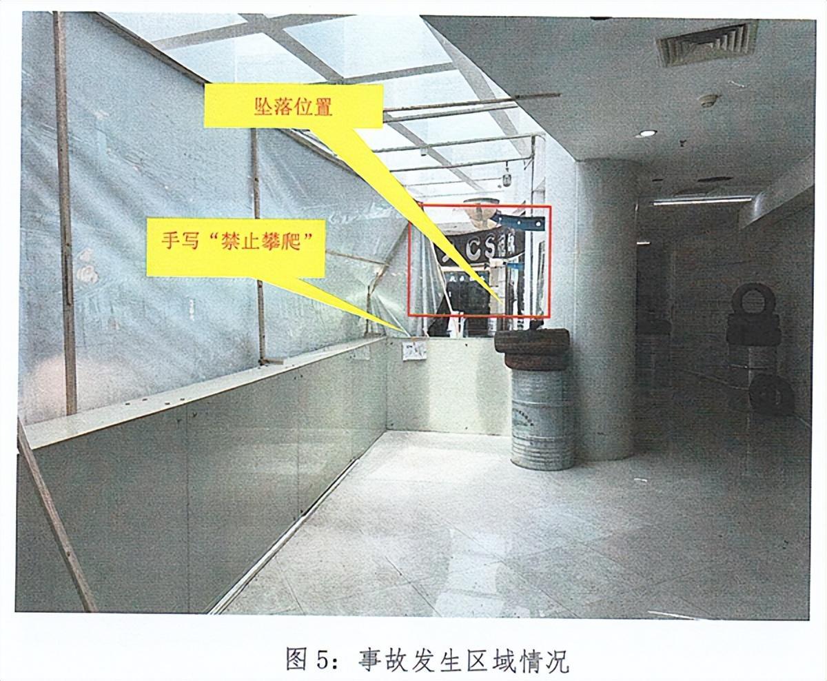 事发时,队友看见付某俊攀爬到护栏上,然后挪到一处有广告喷绘布遮挡的转角位置作为掩体。付某俊手持玩具枪往外试探是否能偷袭别人,将身体倚靠挨着上方的广告喷绘布,广告喷绘布结构由木方支撑因受カ不够,其中一根木方突然断裂和广告喷绘布撕扯,付某俊因失去依靠从五楼护栏上往下跌落。付某俊在跌落过程中,砸中三楼自动扶梯的手扶带后继续跌落,最终跌落在二楼的自动扶梯侧边。