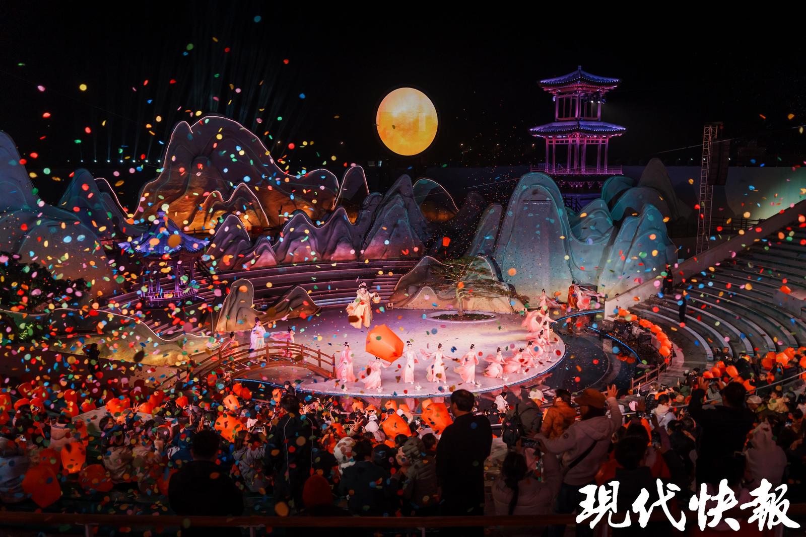 这场盛事背后,是拈花湾以创新为翼、推动传统文化现代表达的不懈探索。微笑广场《拈花一笑》演出焕新升级,2000架无人机编队灵动变幻,威亚演员脚踏发光一叶菩提凌空起舞,银色焰火如星河倾泻。以王维为主角的沉浸式舞台剧即将启幕,通过戏剧、舞美、打铁花与数字艺术交融,带领观众步入诗画相融的东方意境。