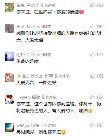本次航班的乘务长说,航班是临时接到通知,有医护人员紧急运送捐献器官,后来才知道捐赠者是同事,十分感动。“我们想以最好状态为他飞好这一班,帮他完成伟大的遗愿”。