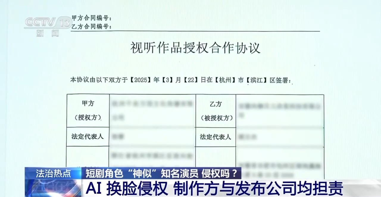 北京互联网法院立案庭法官 赵琪:法院认定涉案的片段是被告杭州某公司使用深度合成技术,对原告肖像进行AI换脸的结果,判决其向原告赔礼道歉,并且赔偿经济损失。被告阜阳这家公司没有尽到对涉案短剧的审查义务,也判决它向原告承担侵权责任,赔偿经济损失,并且赔礼道歉。