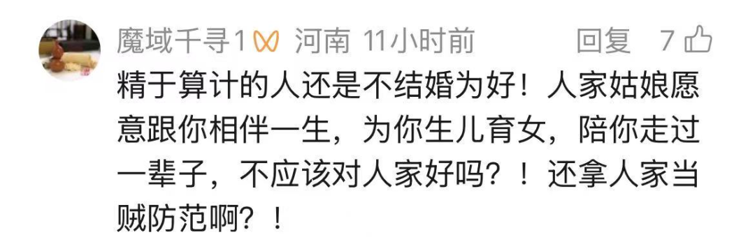 而另一种观点,则是为小李的妻子“鸣不平”。认为这是对婚姻的不信任。