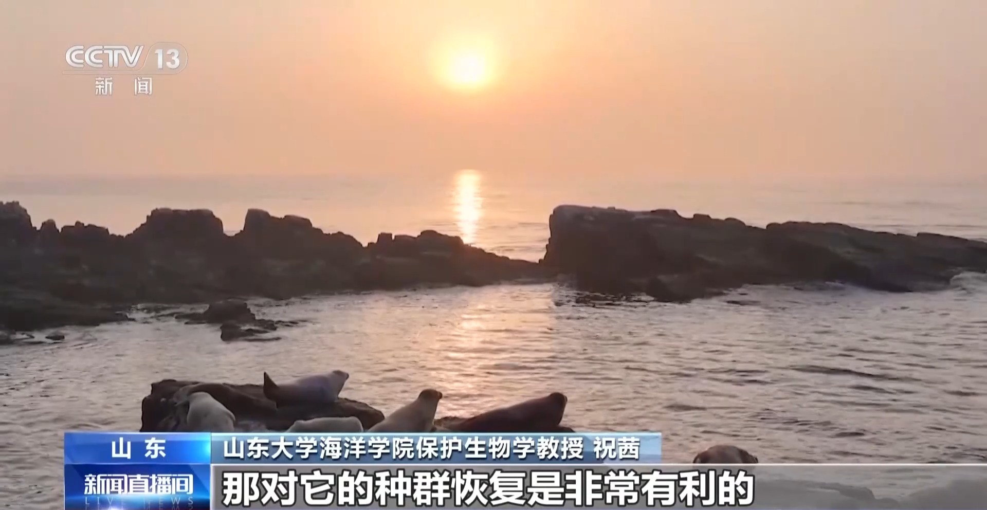 山东大学海洋学院保护生物学教授 祝茜:非常有意义,它的繁殖区主要扩大了,以前认为斑海豹只在冰上生产,但现在如果它在礁石上也能生产,它的种群恢复是非常有利的。