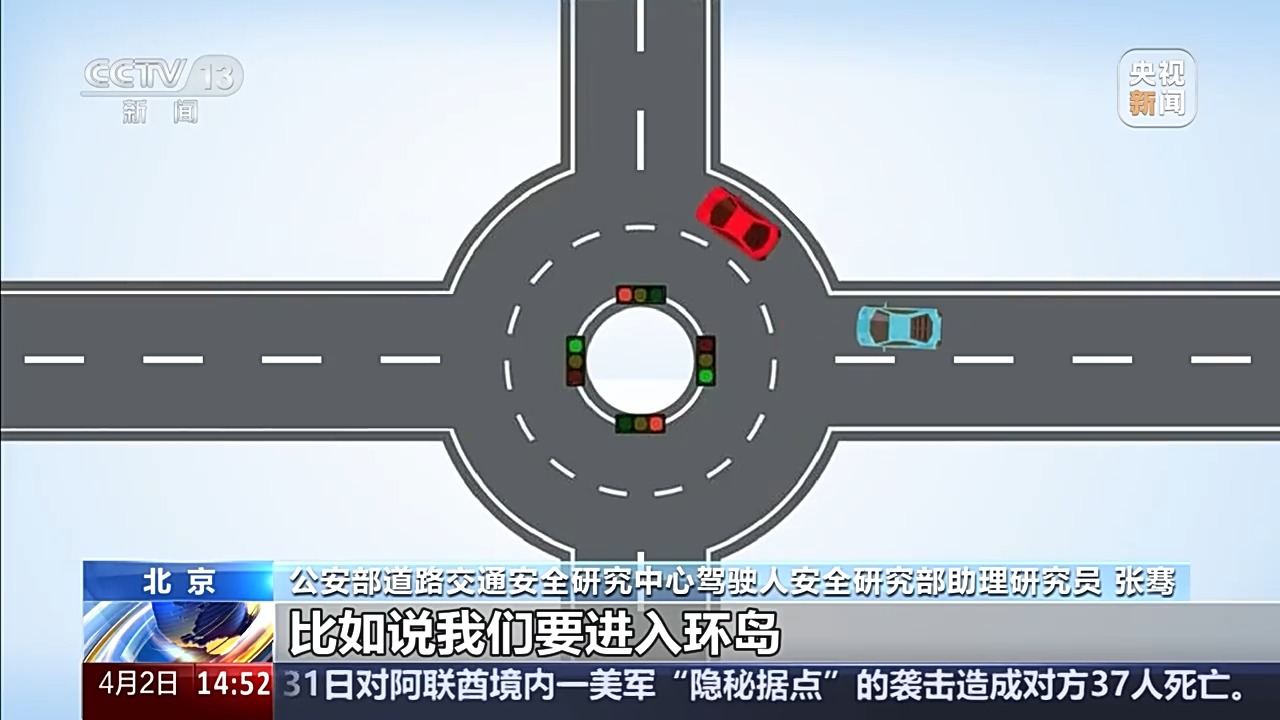 公安部道路交通安全研究中心驾驶人安全研究部助理研究员 张骞:此外在一些特殊路段,比如说我们要进入环岛,那么必须让环岛内的车辆先行。通过狭窄或者没有道路中心线的路段时,有障碍的一方要让无障碍的一方先行,下坡车辆要让上坡车辆先行。