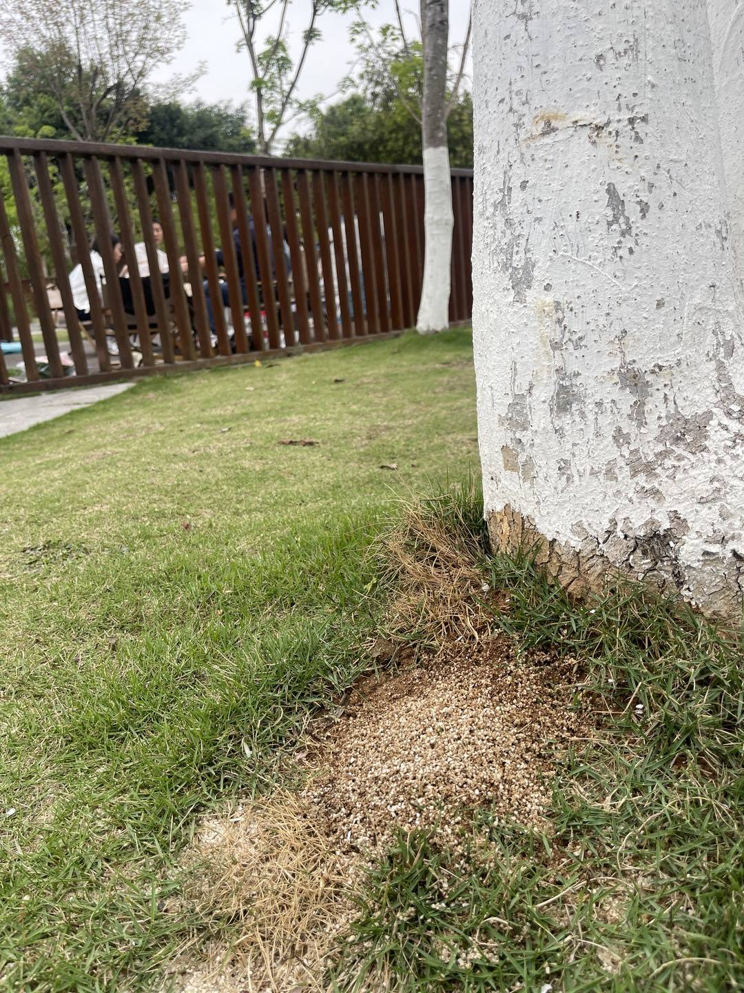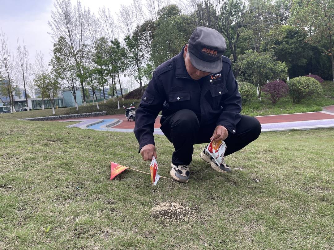 高投城资工作人员晋先生介绍,在该公园内,安排了专门人员对管理区域进行巡查,如果发现有红火蚁,就立刻使用携带的药品投放,进行应急处理,并放置小红旗做警示。如果发现面积较大,会安排专业人员进行防治跟踪,建立台账、定期跟踪药效,在投放一周后根据防治效果进行第二次、三次补撒。