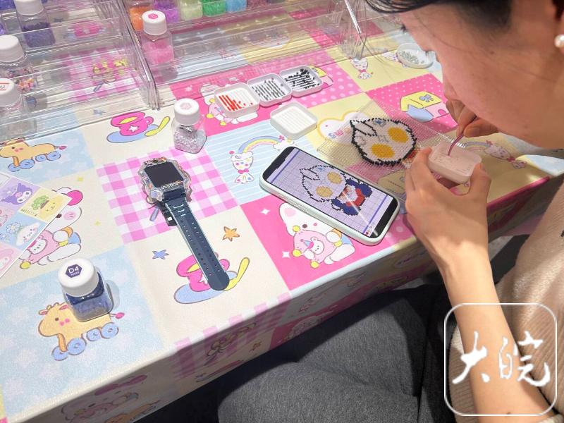 值得注意的是,拼豆的场景还呈现出“跨界融合”趋势。在合肥,部分咖啡馆、书店也开始尝试引入拼豆体验区,让消费者在喝咖啡、看书的同时,通过拼豆放松身心,丰富消费体验,这种“休闲+治愈”的组合模式,正成为新的消费热点。
