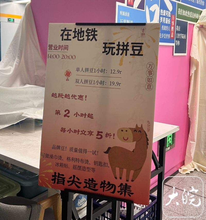 近期,合肥轨道交通集团在4号线工经学院站、3号线与8号线换乘站一里井站设置了拼豆体验点位,成为地铁经济的新亮点。相关工作人员向记者介绍,这些摊位由轨道公司自行设置,并非商业合作或第三方运营,初衷是丰富乘客候车体验、带动地铁经济发展。“我们有自己的拿货渠道,保证拼豆的质量和种类,周末体验的人次较多,乘客反馈也很好,很多人会趁着候车间隙体验一把,缓解通勤疲惫。”工作人员表示,这种低成本、轻量化的体验项目,既贴合年轻人的消费习惯,也为地铁站点增添了烟火气。
