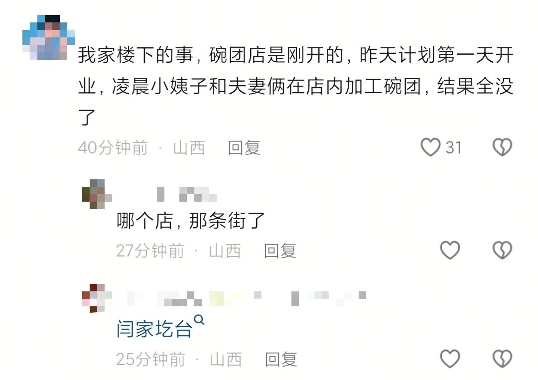据该商户透露,事发店铺是一家新开的碗团店。“他家前一天试营业了,准备第二天正式营业呢,结果凌晨就出事了。”该商户唏嘘道。