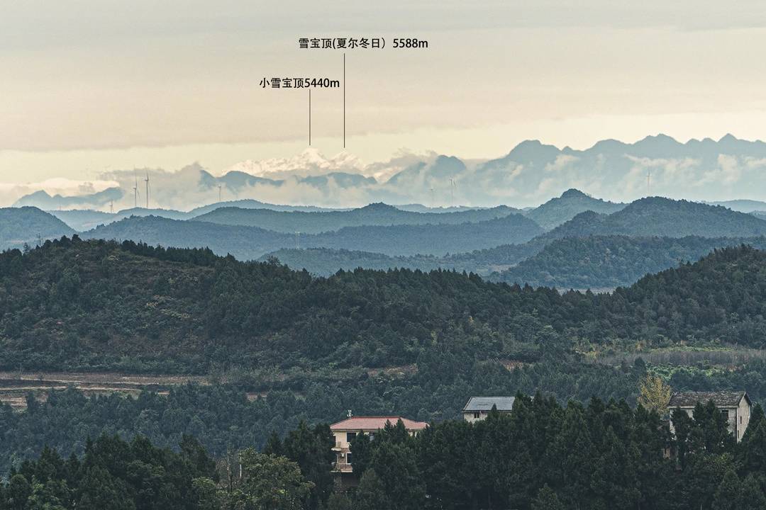 他告诉记者,自己对这两座山非常熟悉,“各个角度基本都认得”。他还点出照片中的中景是江油藏王寨的大岩方,近处的风车则位于梓潼旺瓢山一带。