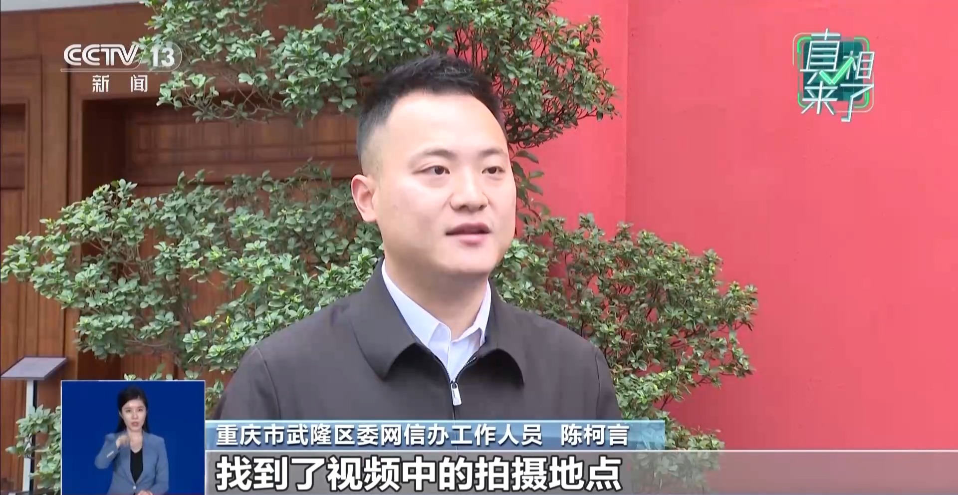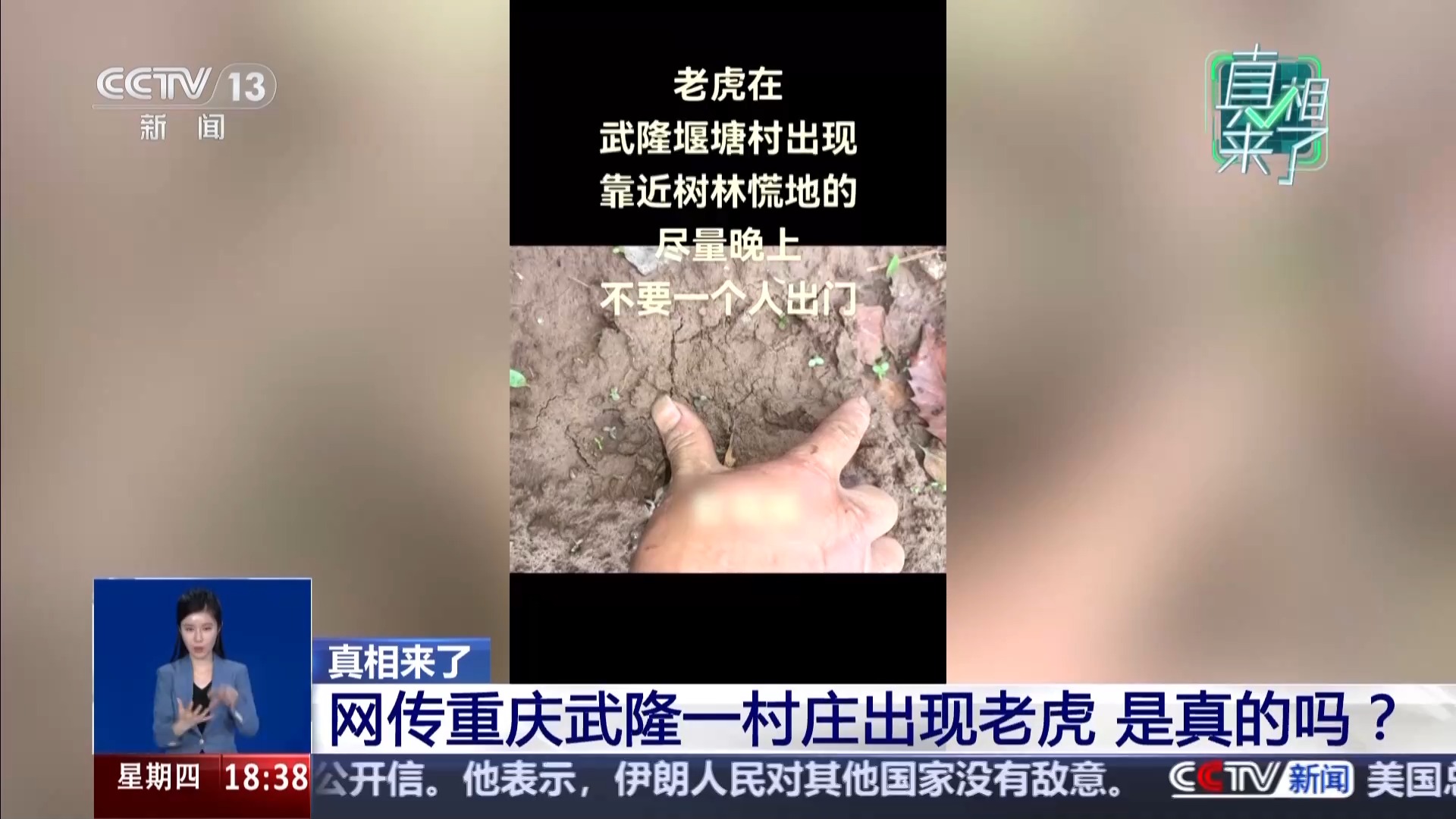 重庆市武隆区委网信办工作人员 陈柯言:我们在芙蓉街道堰塘村找到了视频中的拍摄地点,经林业专家对现场遗留的野生动物爪印的形态、大小、分布等特征进行专业比对后,确认该爪印为其他野生动物足迹,并非老虎爪印。