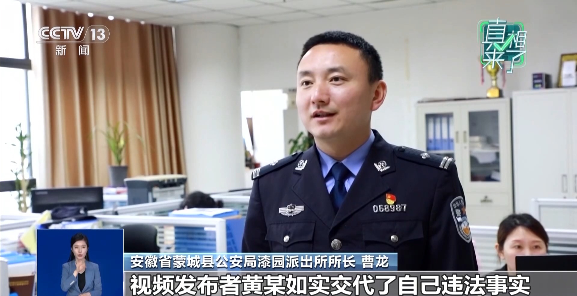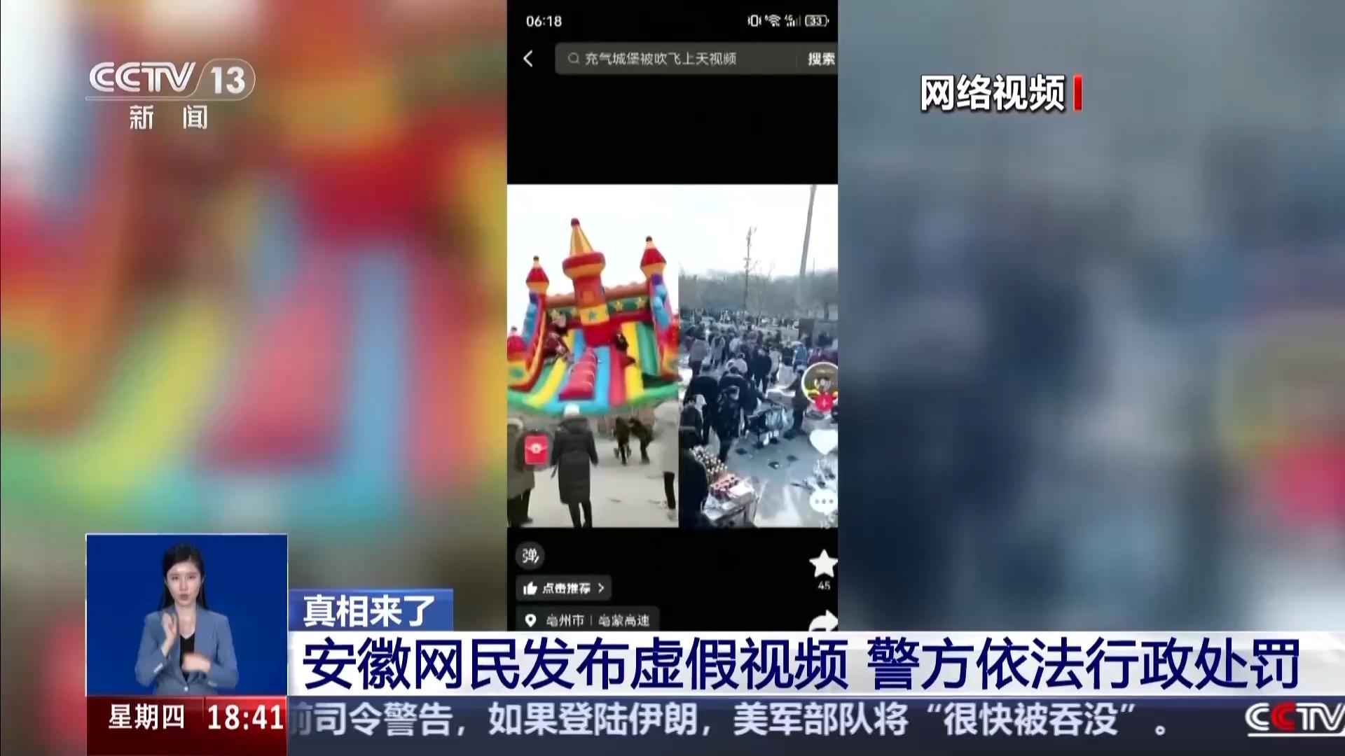 安徽省蒙城县公安局漆园派出所所长 曹龙:经过询问,视频发布者黄某如实交代了自己的违法事实。他说,看到近期有真实的充气城堡安全事故新闻引发了很高的关注度,就想通过AI技术合成类似视频,博取眼球、增加自己账号的关注度,目前,黄某已经认识到自己的错误,主动配合删除了虚假视频。