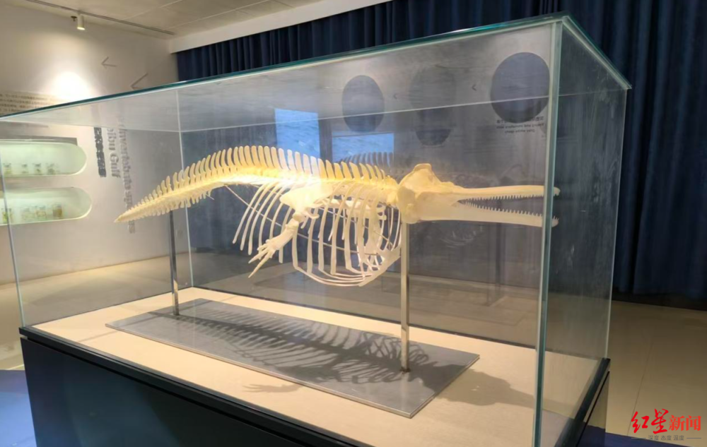 ▲三娘湾中华白海豚科普馆中展示的白海豚骨架